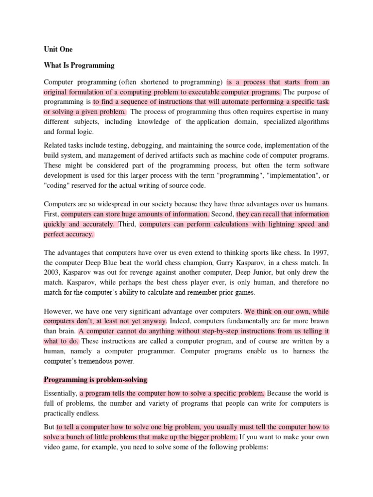 want the computer to do and exactly how to do it, the computer on its own will not know how to