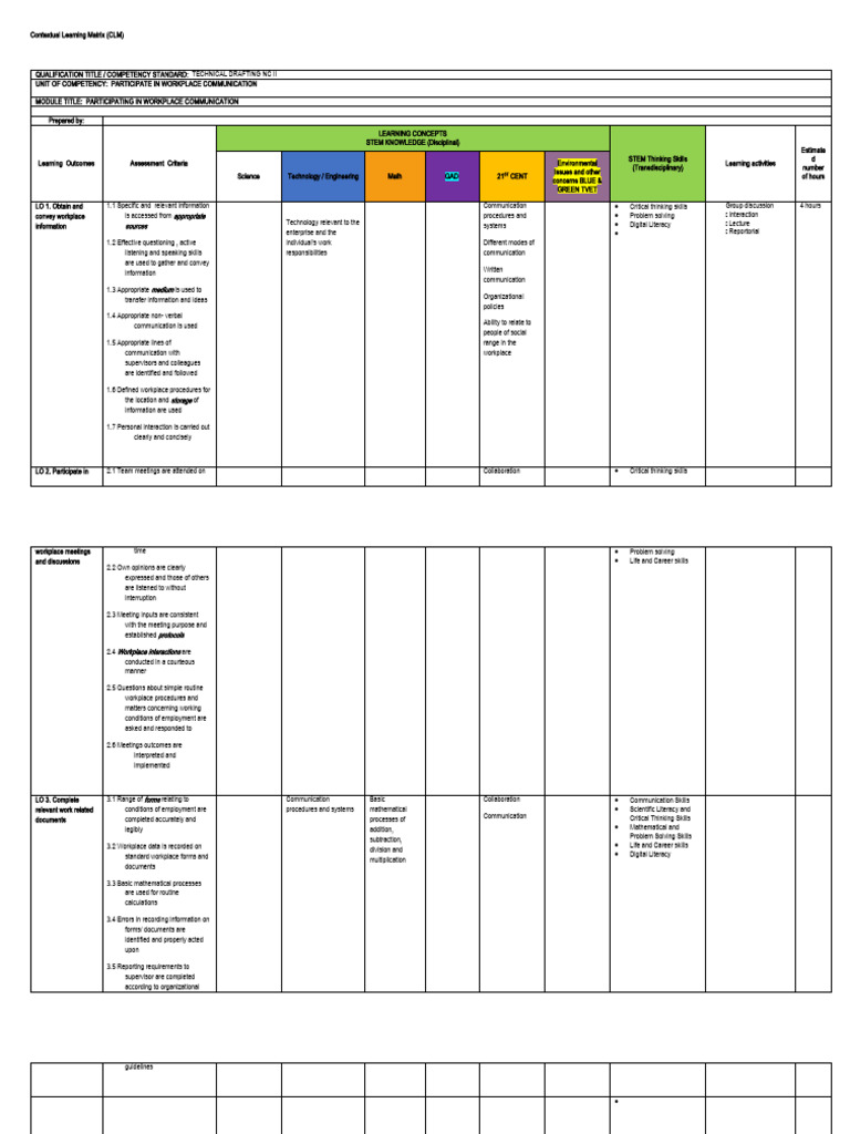 LO 2. Participate in 2.1 Team meetings are attended on Collaboration Critical thinking skills