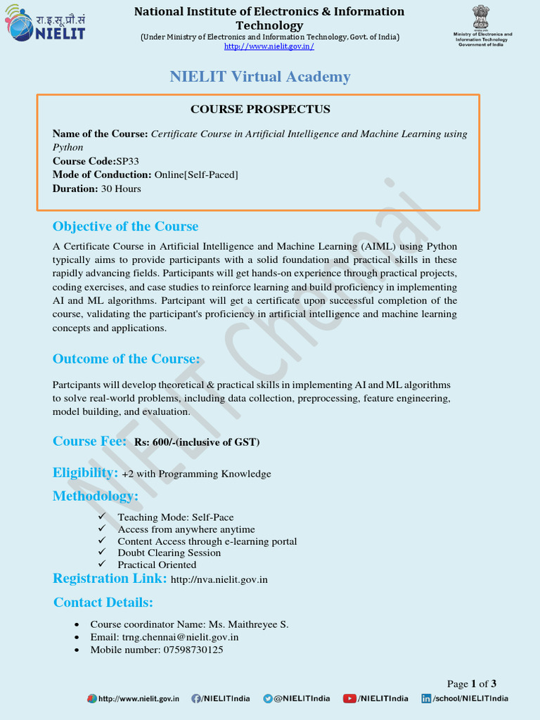 AI and ML algorithms. Partcipant will get a certificate upon successful completion of the