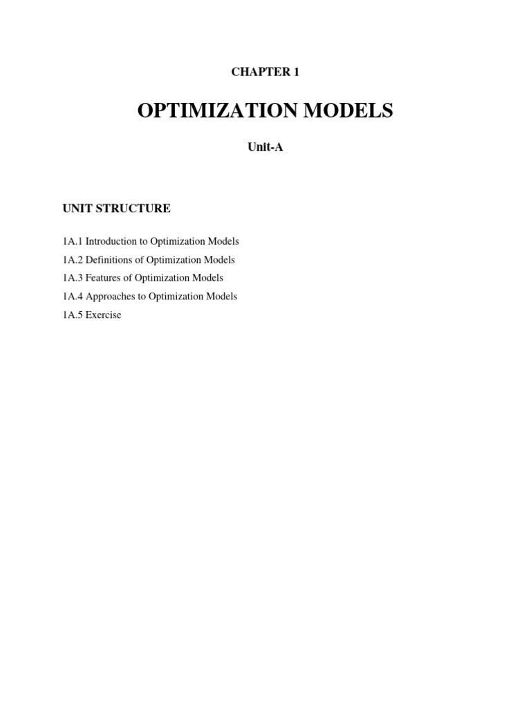 use of their circumstances. Hence optimization models are mathematical models designed to help