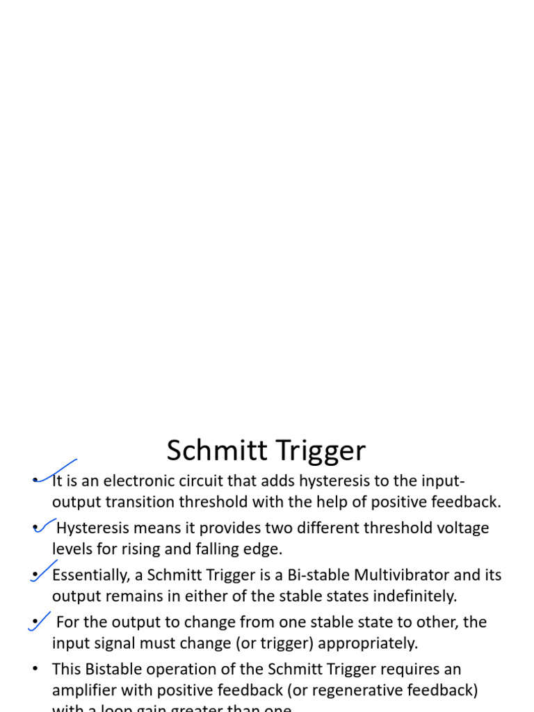 • This Bistable operation of the Schmitt Trigger requires an