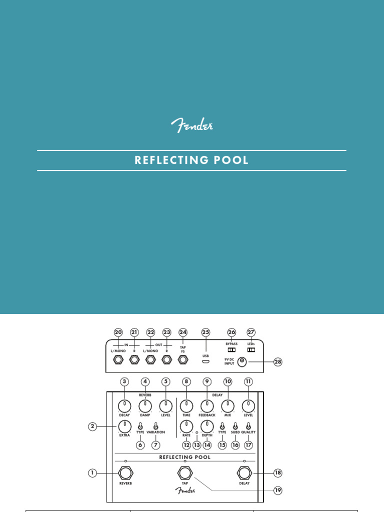 Thanks for purchasing the Reflecting Pool delay-reverb pedal. This highly