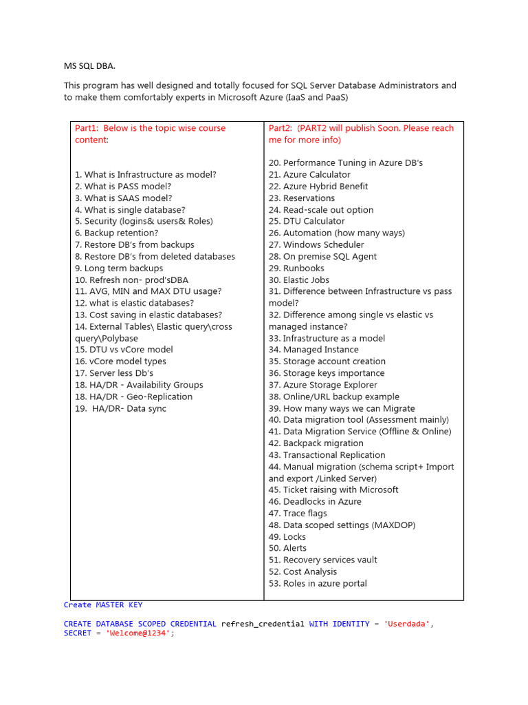 8. Restore DB’s from deleted databases 28. On premise SQL Agent
