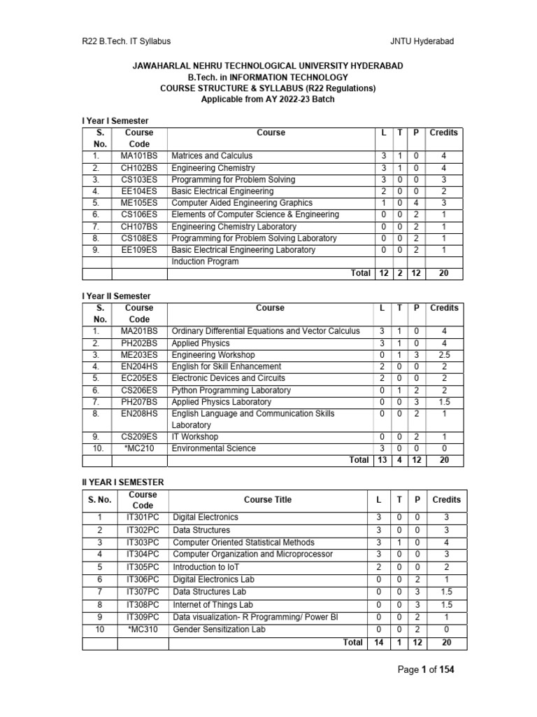 R22 B.Tech. IT Syllabus JNTU Hyderabad