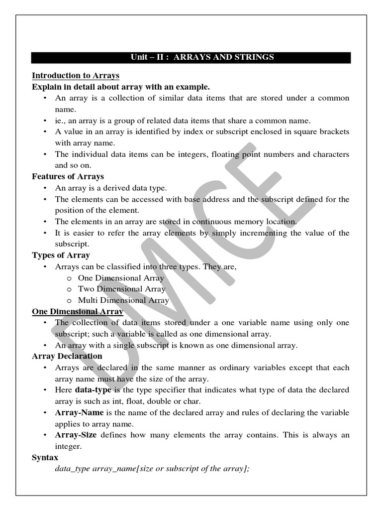 1. Define Array. (Jan 2014) (Or) What is an Array? (May/June 2016) (Or) What is an
