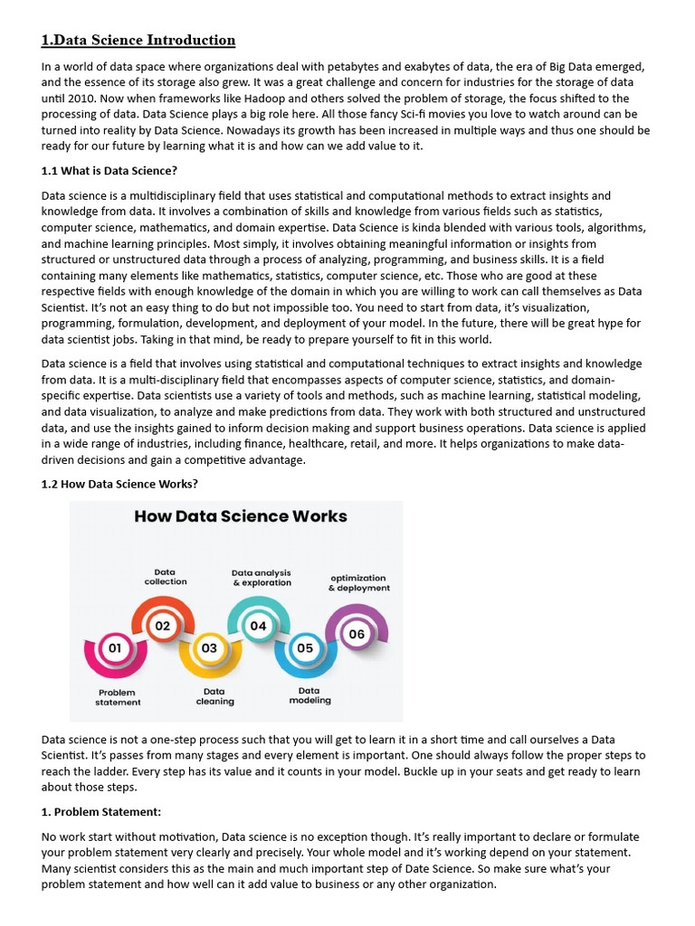 - Visualization : Using charts, graphs, and plots to present patterns and insights.
