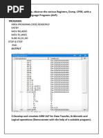 Experiment No. 2(b) : Develop and simulate ARM ALP for Data Transfer, Arithmetic