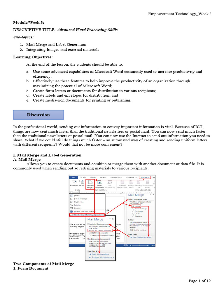 DESCRIPTIVE TITLE: Advanced Word Processing Skills