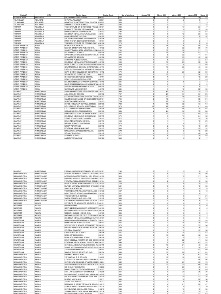 Center Name Center Code No. of students Above 700 Above 650 Above 600 Above 550 Above 500