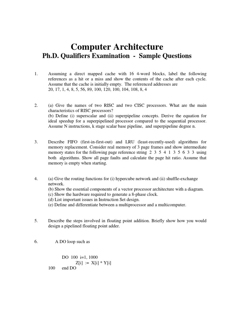 Ph.D. Qualifiers Examination - Sample Questions