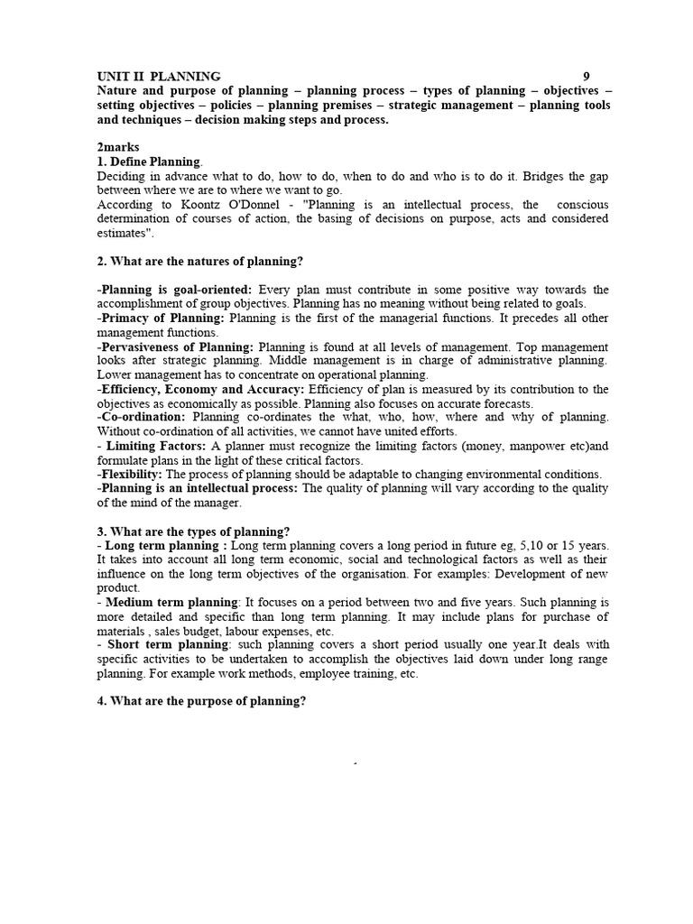 specified objectives. However, planning makes the objectives more concrete by focusing