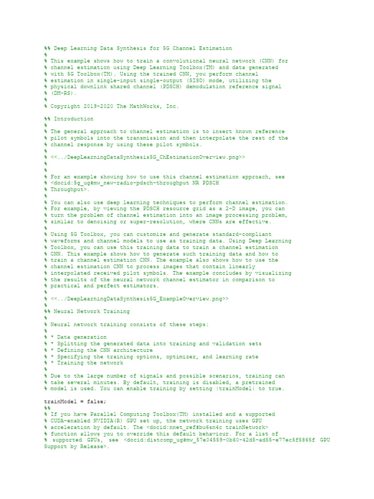 % channel estimation using Deep Learning Toolbox(TM) and data generated