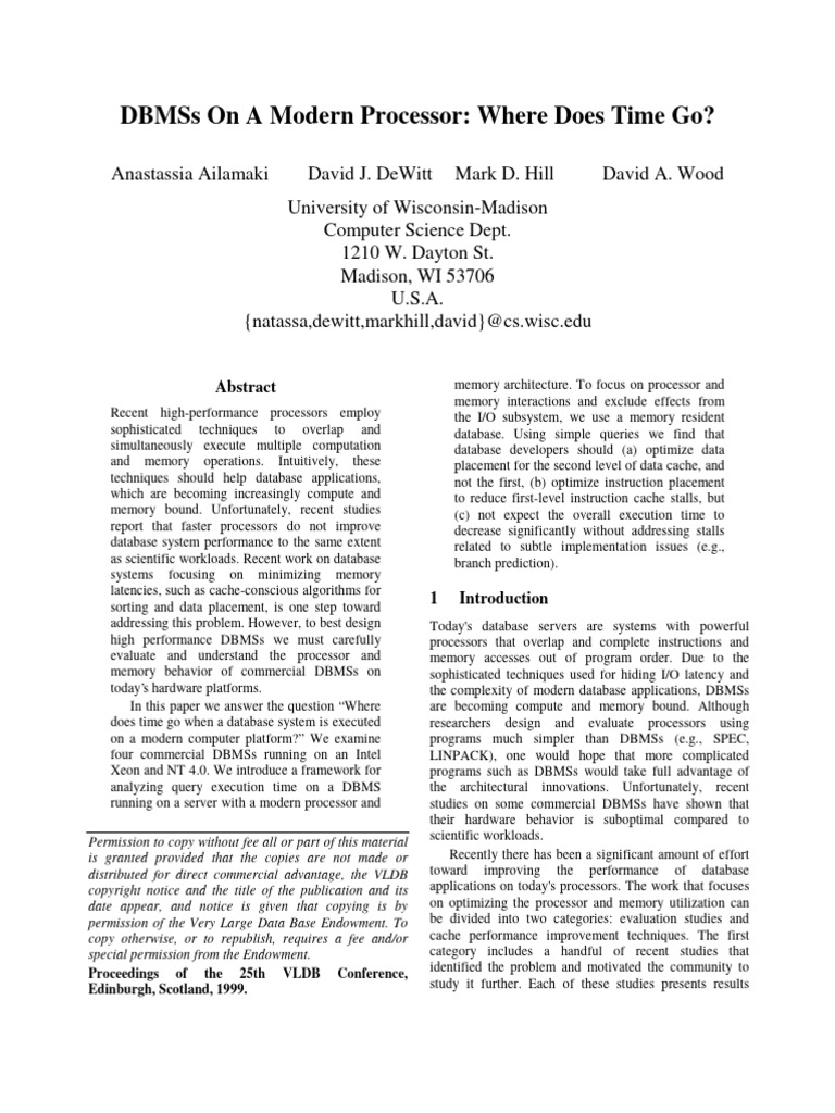 performance at the second cache level as well. In the case four DBMSs. The results in this study reflect the real I-
