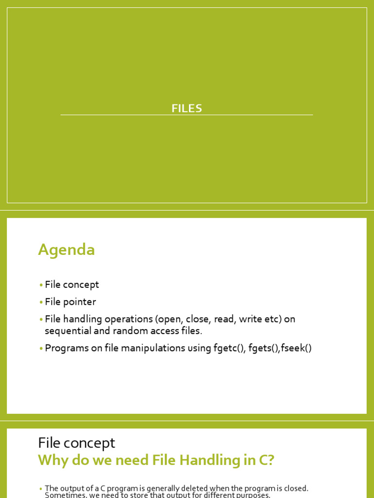 • Programs on file manipulations using fgetc(), fgets(),fseek()