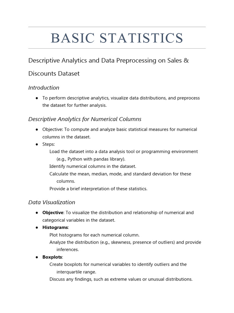 ● To perform descriptive analytics, visualize data distributions, and preprocess