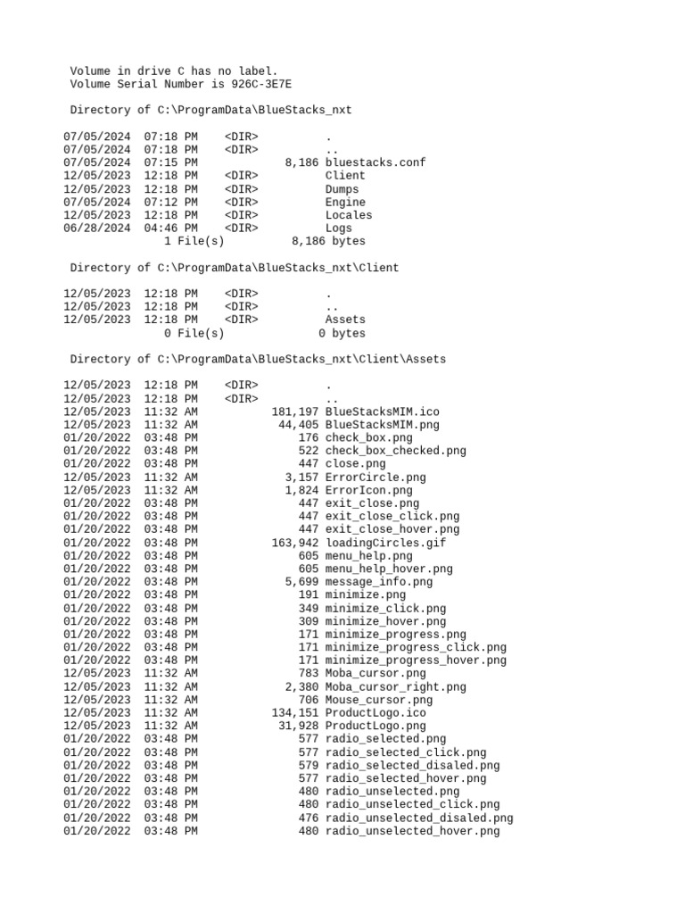 Directory of C:\ProgramData\BlueStacks_nxt\Client