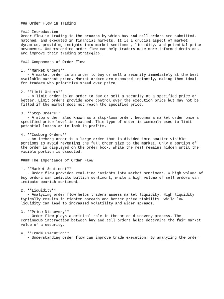 - Order flow provides real-time insights into market sentiment. A high volume of