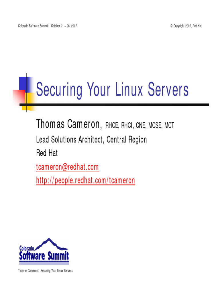 Thomas Cameron: Securing Your Linux Servers Slide 3