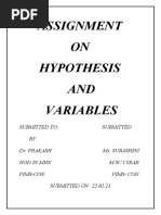 Hypothesis testing begins with an assumption, called a Hypothesis that we make about a population parameter. A hypothesis in statistics is simply a quantitative statement about a population Procedure of Testing Hypothesis The procedure of testing hypotheses is briefly described below: 1. Set up a hypothesis The first thing in hypothesis testing is to set up a hypothesis about a population parameter. Then we collect sample data, produce sample statistics, and use this information to decide how likely it is that our hypothesized population parameter is correct. These hypotheses must be so constructed that if one hypothesis is accepted, the other- is rejected and vice versa. Null hypothesis The null hypothesis is a very useful tool in testing the Significance of difference. In its simplest form the hypothesis asserts that there is no real difference in the sample and the population in the particular matter under consideration. For example, if we want to find out whether extra coaching has benefited the students or not, we shall set up a null hypothesis that "extra coaching has not benefited the students". Similarly if we want to find out whether a particular drug is effective in curing malaria we will take the null hypothesis that "the drug is not effective in curing malaria". Alternative hypothesis As against the null hypothesis, the alternative hypothesis specifies those values that the researcher believes to hold true, and. of course he hopes that the sample data lead to acceptance of this hypothesis as true. The alternative hypothesis may embrace the whole range of values rather than single point. It is opposite to null hypothesis. The null and alternative hypotheses are distinguished by the use of two different symbols. Ho representing the null hypothesis and H1 the alternative hypothesis. 2. Set up a suitable significance level Having set up the hypothesis, the next step is to test the validity of Ho against that of Ha at as certain level of significance. The significance level is customarily expressed as a percentage such as 5 per cent, is the probability of rejecting the null hypothesis if it is true. When the hypothesis in question is accepted at the 5 per cent level, the statistician is running the risk that, in the long run, he will be making the wrong decision about 5 per cent of the time. By rejecting the hypothesis at the same level he runs the risk of rejecting a true hypothesis in 5 out of every 100 occasions.