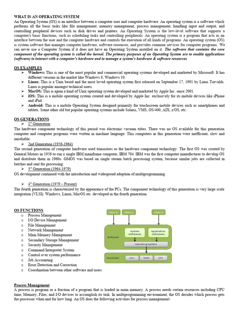 An Operating System (OS) is an interface between a computer user and computer hardware. An operating system is a software which