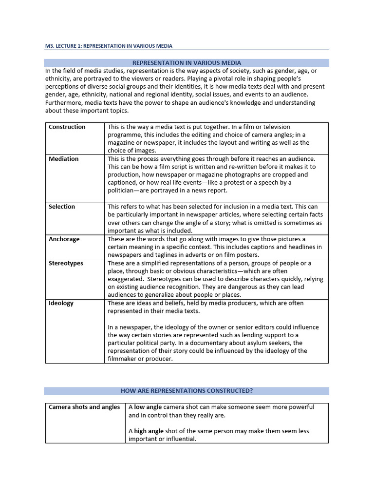 Selection This refers to what has been selected for inclusion in a media text. This can
