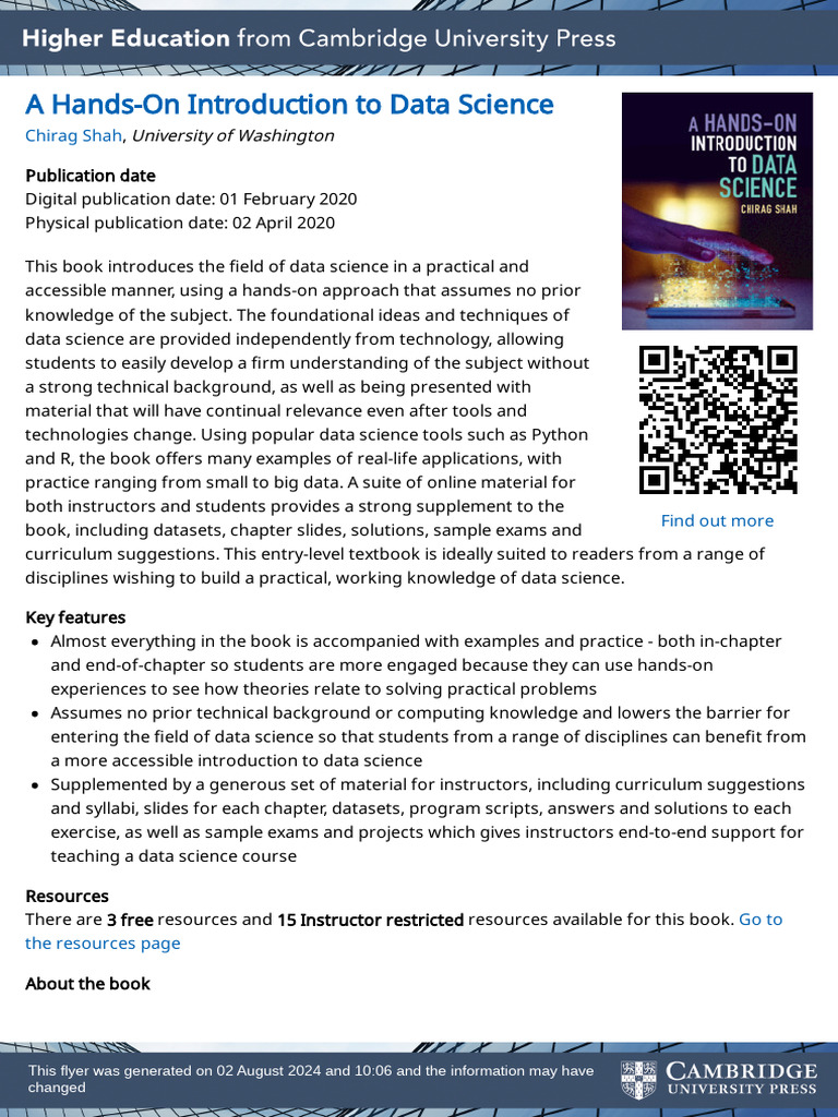 and syllabi, slides for each chapter, datasets, program scripts, answers and solutions to each