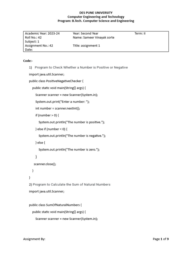 Roll No.: 42 Name: Sameer Vinayak sorte