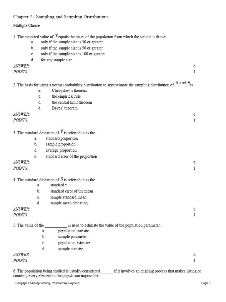 9. The finite correction factor should be used in the computation of when n/N is greater than