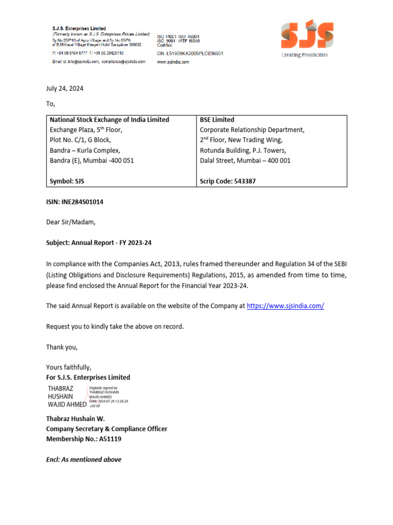 SJS Enterprises FY24 Annual Report