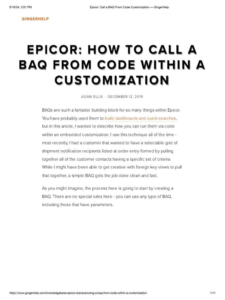 5/16/24, 3:51 PM Epicor: Call a BAQ From Code Customization — GingerHelp