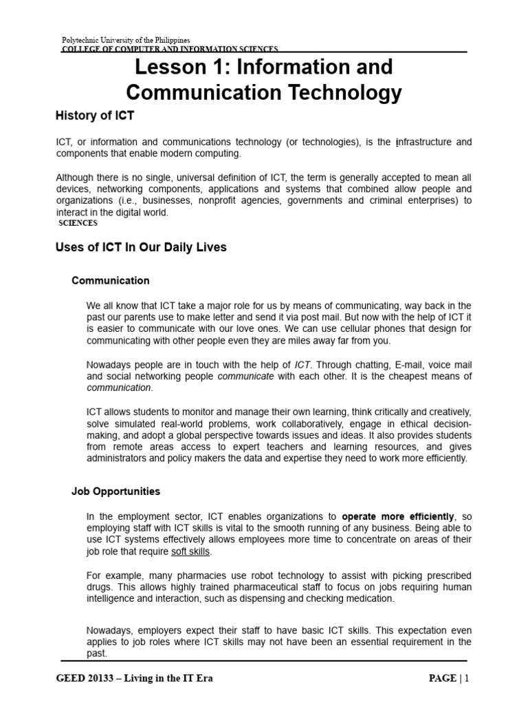manage information.(6) In some contexts, ICT has also become integral to the