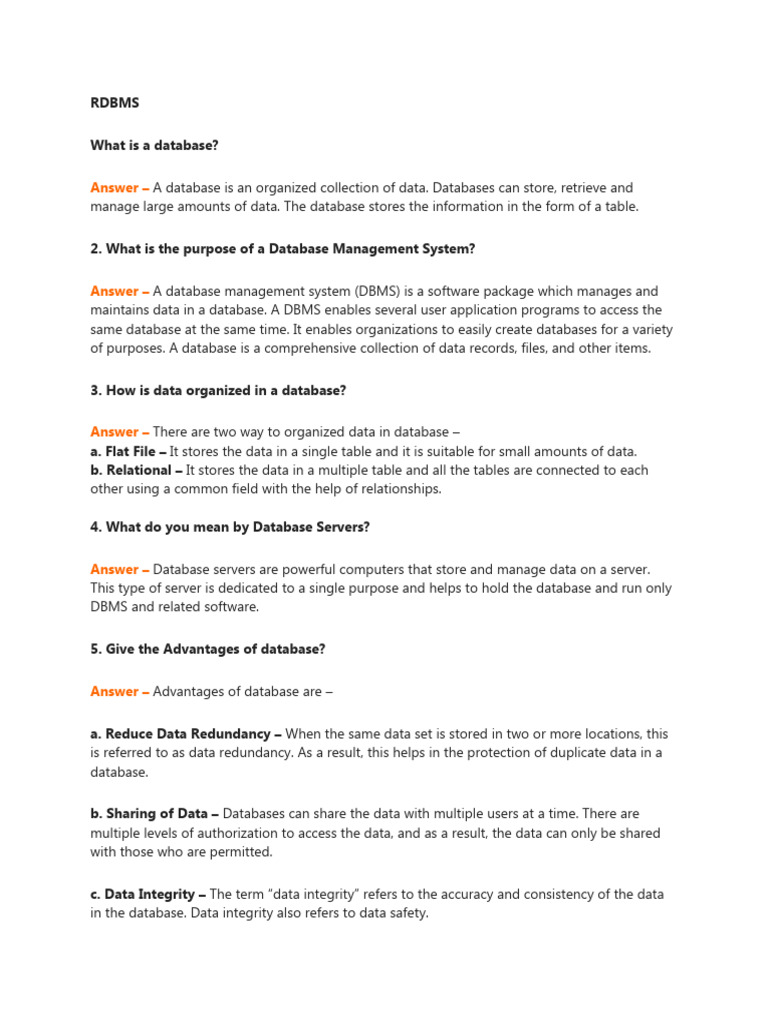 Answer – RDBMS stands for Relational Database Management System is an upgraded version