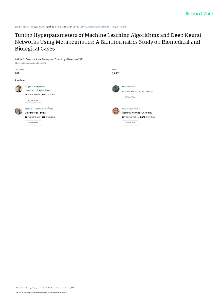How to cite: Nematzadeh, S., Kiani, F., Torkamanian-Afshar, M., Aydin, N. Tuning hyperparameters of machine