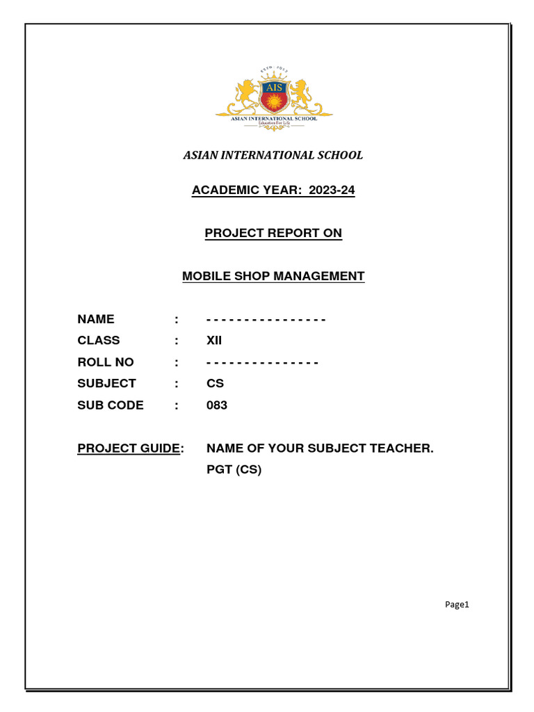 PROJECT GUIDE: NAME OF YOUR SUBJECT TEACHER.