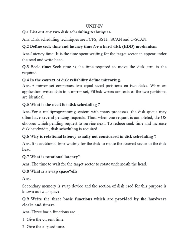 Ans. Disk scheduling techniques are FCFS, SSTF, SCAN and C-SCAN.