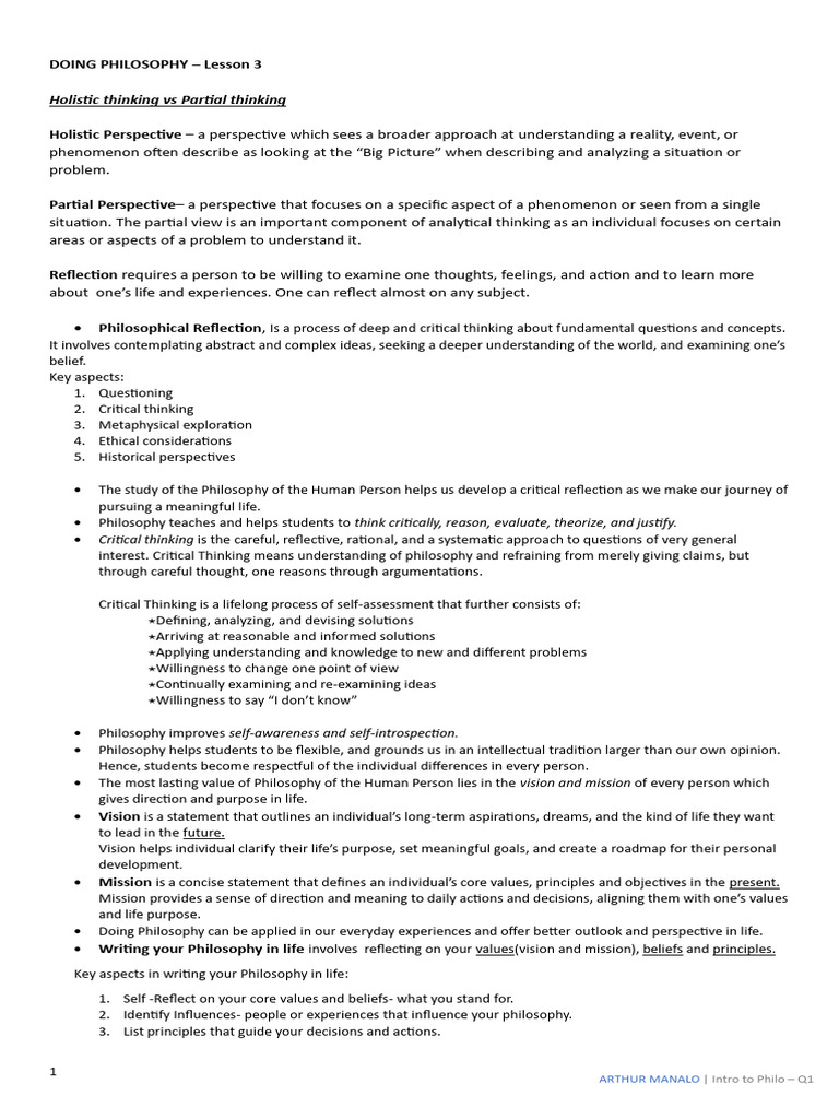 • Doing Philosophy can be applied in our everyday experiences and offer better outlook and perspective in life.