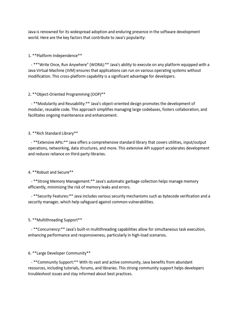 - **Adoption by Enterprises:** Java is a preferred choice for large enterprises due to its scalability,