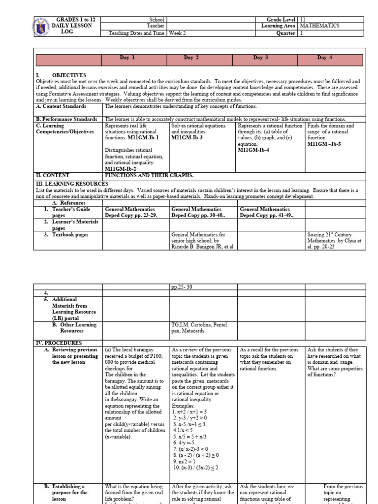 LOG Teaching Dates and Time Week 2 Quarter 1