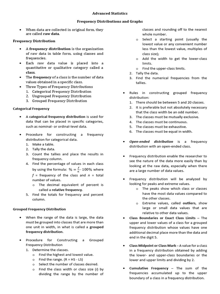 1. Categorical Frequency Distribution • Rules in constructing grouped frequency