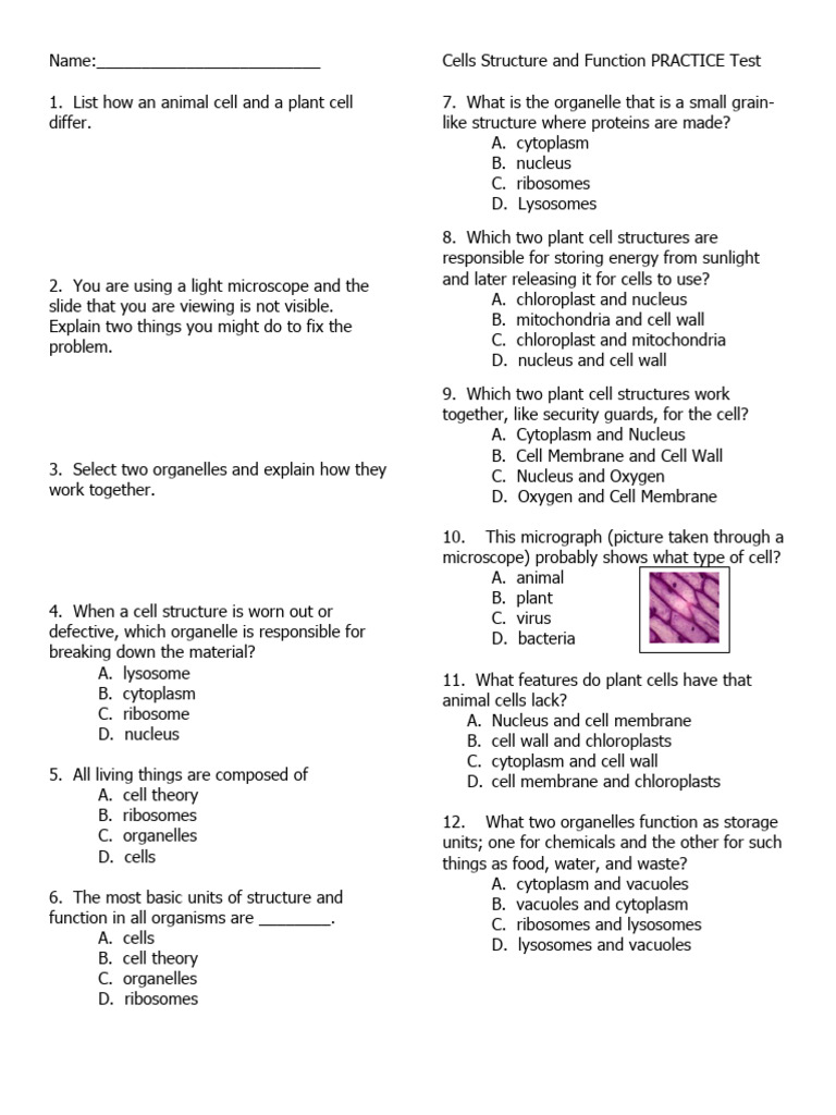 1. List how an animal cell and a plant cell 7. What is the organelle that is a small grain-