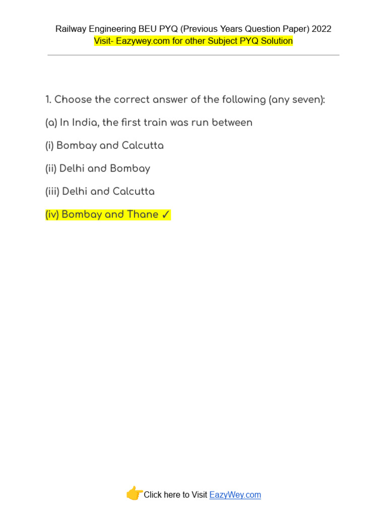 Railway Engineering BEU PYQ (Previous Years Question Paper) 2022