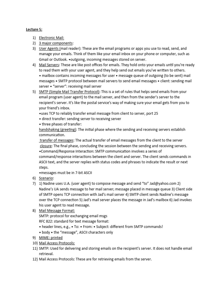 over the TCP connection 5) Jad’s mail server places the message in Jad’s mailbox 6) Jad invokes