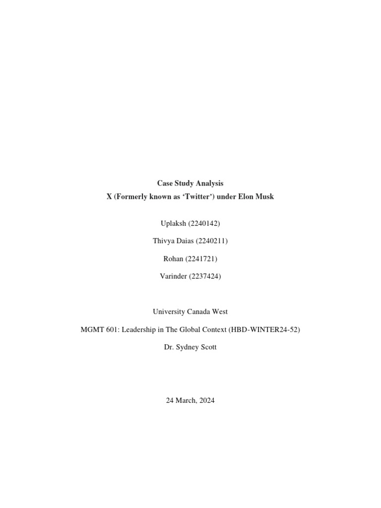 Suitability of Musk’s Leadership in ‘X’’s Context.................................................................... 23