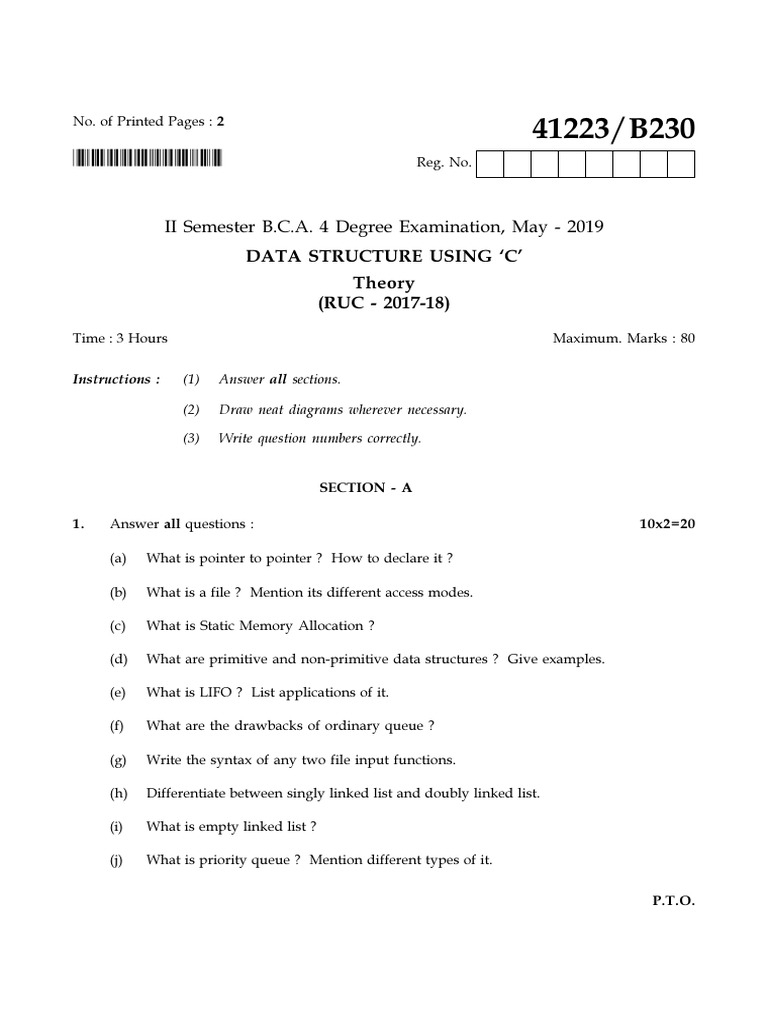 II Semester B.C.A. 2 Degree Examination, May - 2019