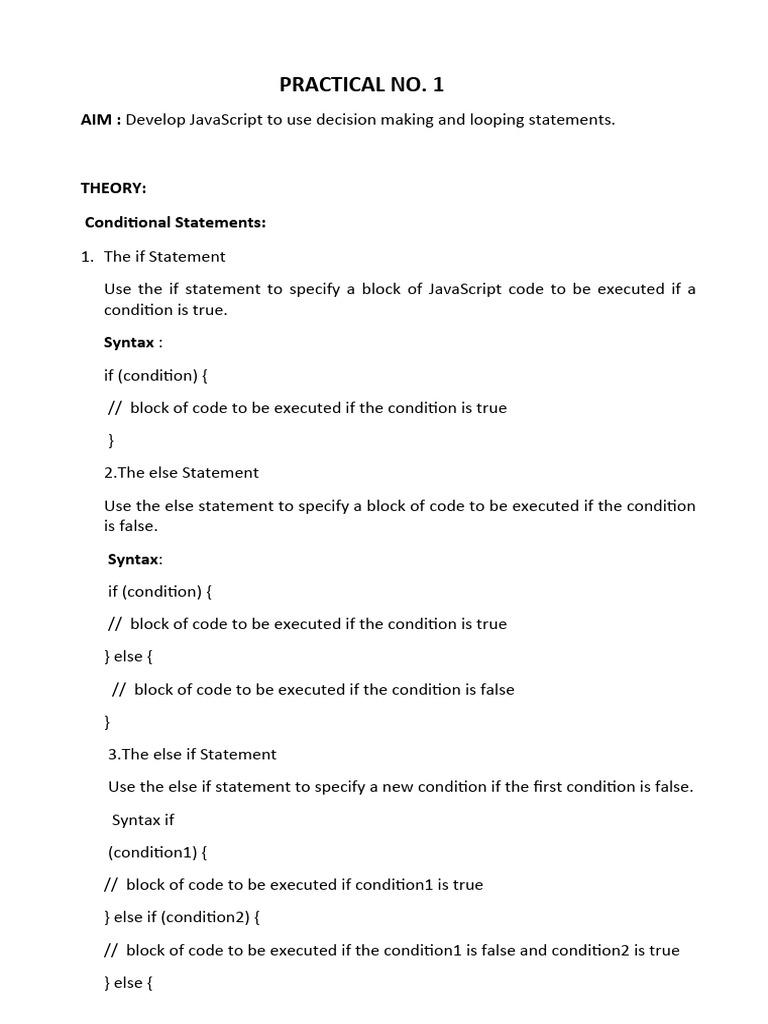 AIM : Develop JavaScript to use decision making and looping statements.
