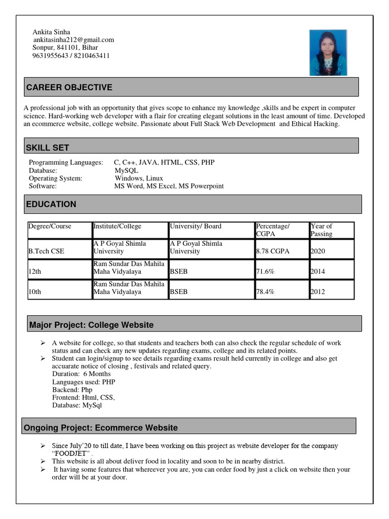 an ecommerce website, college website. Passionate about Full Stack Web Development and Ethical Hacking.