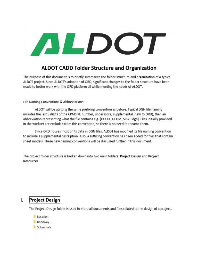 ALDOT project. Since ALDOT’s adoption of ORD, significant changes to the folder structure have been