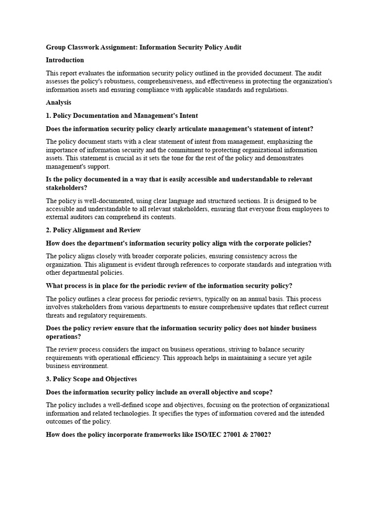 assesses the policy's robustness, comprehensiveness, and effectiveness in protecting the organization's