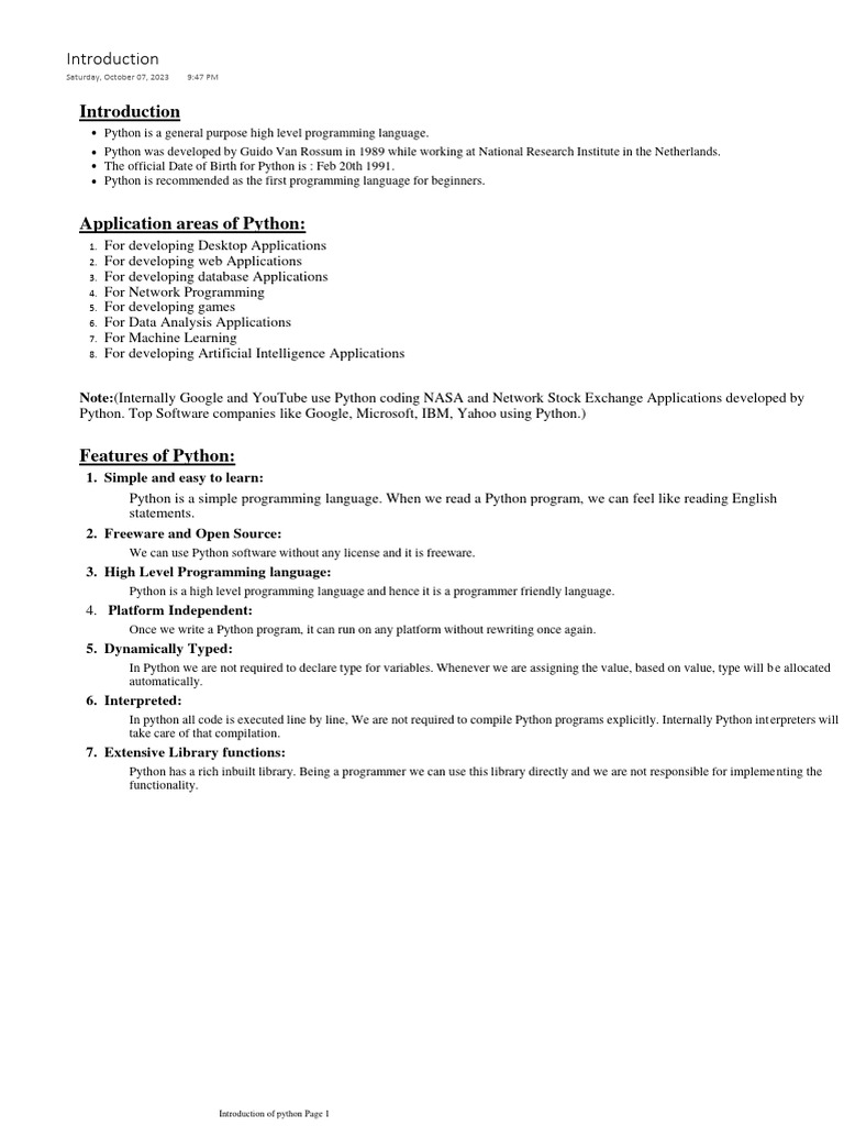 Introduction of python Page 1