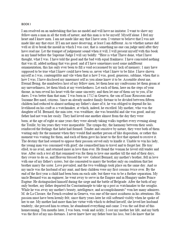 dares. I was better than that man.' I was born in 1712 in Geneva, the son of Isaac Rousseau and